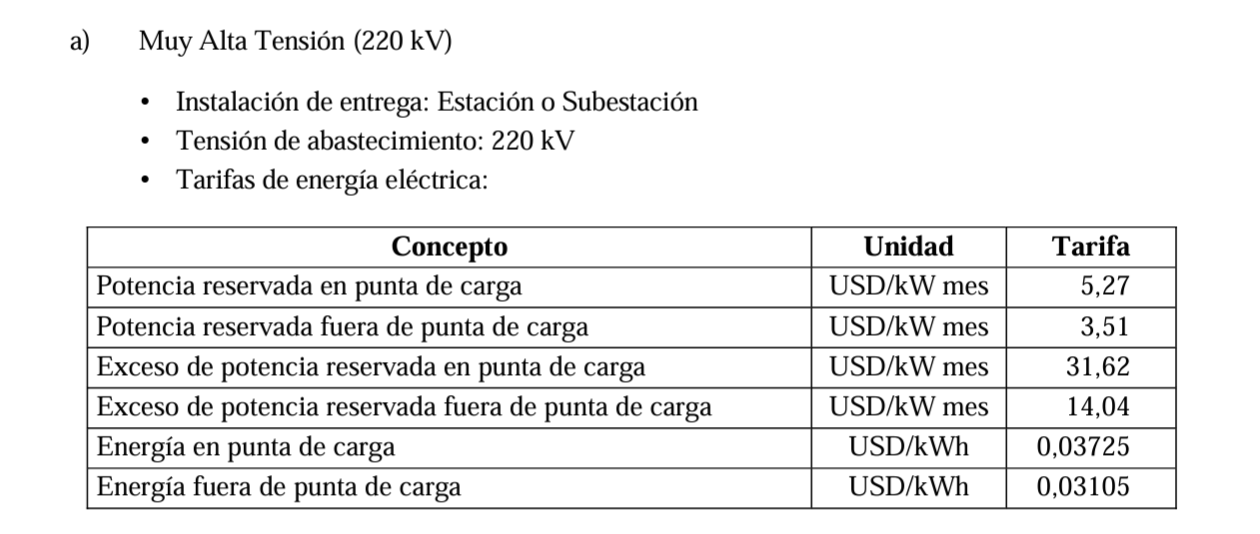 La ANDE reveló en su sitio web el 27 de junio la actualización de las tarifas eléctricas para su categoría de Grupo de Consumo Intensivo Especial, para “Muy Alta Tensión” 220 KV (kilovoltaje), “Alta Tensión” de 66 kV y “Media Tensión” de 23 kV. Recordó que desde 2022, la ANDE puede regular las condiciones del consumo intensivo especial.