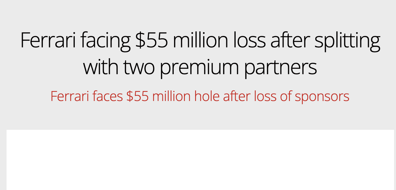 Según los informes, Ferrari también eliminó al socio de análisis de datos Snapdragon, reduciendo sus ingresos en otros 25 millones de dólares.
