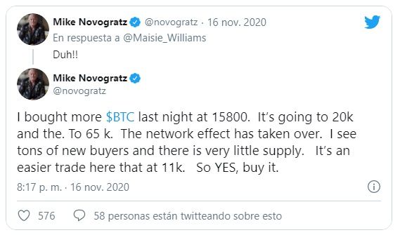 Hay muchas teorías detrás de este rally alcista y muchas predicciones de hacia dónde podría llegar. Un gerente de Citibank dijo que Bitcoin podría superar los 318,000 dólares. Mike Novogratz señaló de una forma más realista que podría llegar a unos 65.000 dólares. Con el “Efecto Red”, dijo, el FOMO institucional y corporativo puede estar apenas comenzando.