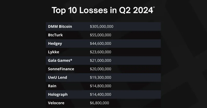 La piratería fue la principal causa de pérdida de fondos en el segundo trimestre de 2024. Los especialistas de Immunefi registraron 53 ataques de piratas informáticos por valor de 564 millones de dólares y sólo 19 estafas por valor de 8,4 millones de dólares.