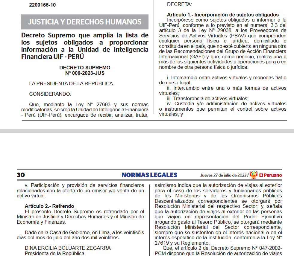 Desde entonces, varios actores del ámbito legislativo peruano han abogado por un mayor control. En especial, los distribuidores de activos digitales, lo que ha llevado a la regulación actual.
