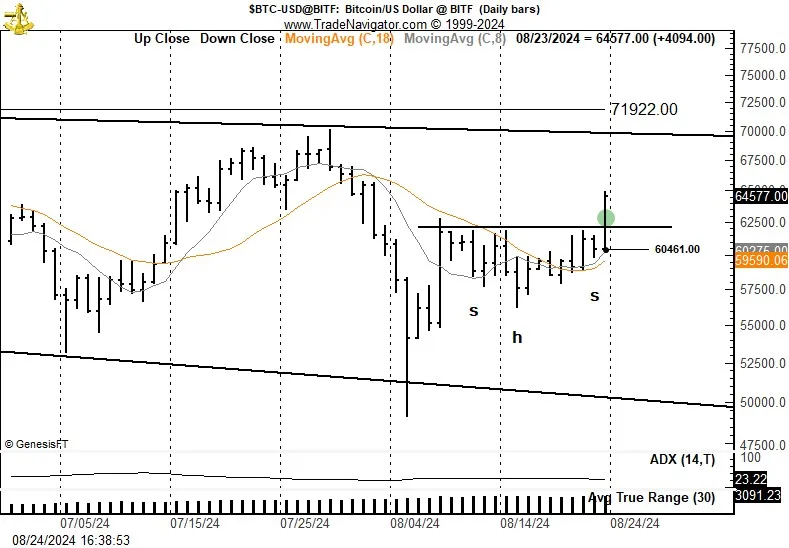 “La construcción del gráfico dominante en el gráfico semanal es un triángulo de ampliación de 5 meses, o megáfono. Podría estar pendiente una ruptura importante. El gráfico diario muestra un posible gráfico de cabeza y hombros invertido y completo que forma parte de una congestión más amplia. Compré una posición de 2.7 BTC con un riesgo de 40 puntos básicos y un stop protector por debajo del mínimo del viernes. Esta es una posición anticipatoria de una ruptura mayor pendiente”, expuso Peter Brandt.