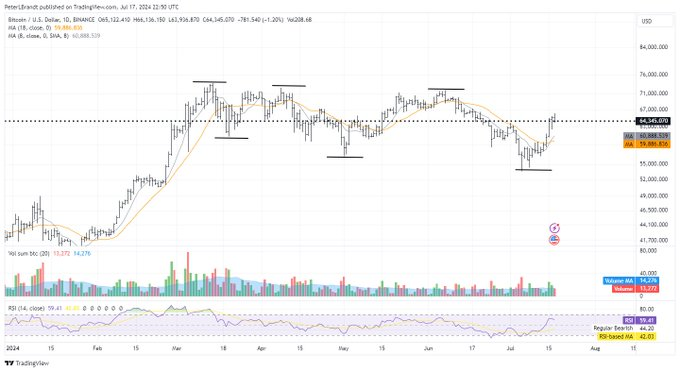 El sentimiento positivo ha regresado por completo al mercado de las criptomonedas durante una semana. El precio de Bitcoin aumentó más del 12% en siete días e incluso alcanzó un máximo de 66,120 dólares el 17 de julio.
