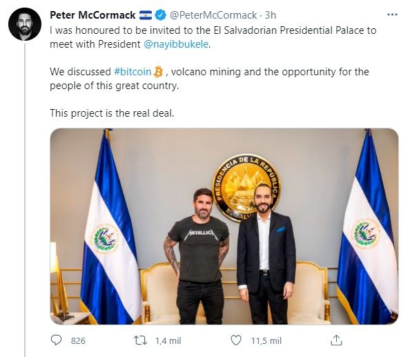 El martes 15 de junio, Peter McCormack, muy conocido en el ecosistema cripto, publicó a través de Twitter su experiencia tras la reunión con el presidente salvadoreño Nayib Bukele: