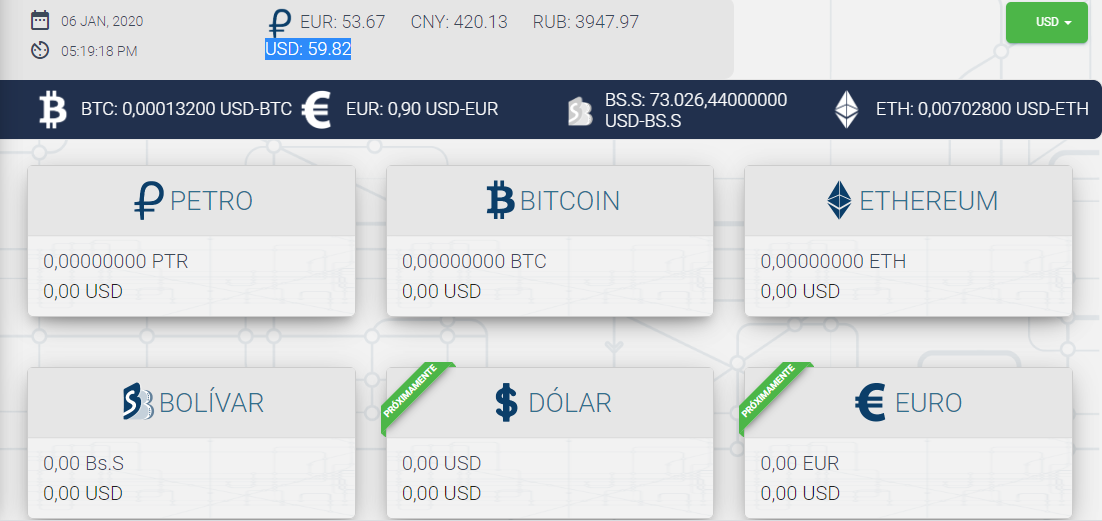De igual forma, Bancar, la única Exchange con un par Petro/USD muestra una tasa de trading al momento de redacción del presente artículo de unos 59.82 dólares por cada Petro