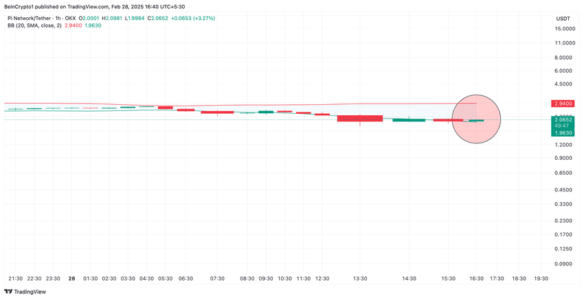 Además, el precio de PI acaba de caer por debajo de la línea inferior de su indicador de bandas de Bollinger, lo que confirma el agotamiento de los vendedores. Este indicador es un marcador de volatilidad que consta de una línea de media móvil media y dos bandas externas que se expanden y contraen en función de las fluctuaciones de precios.