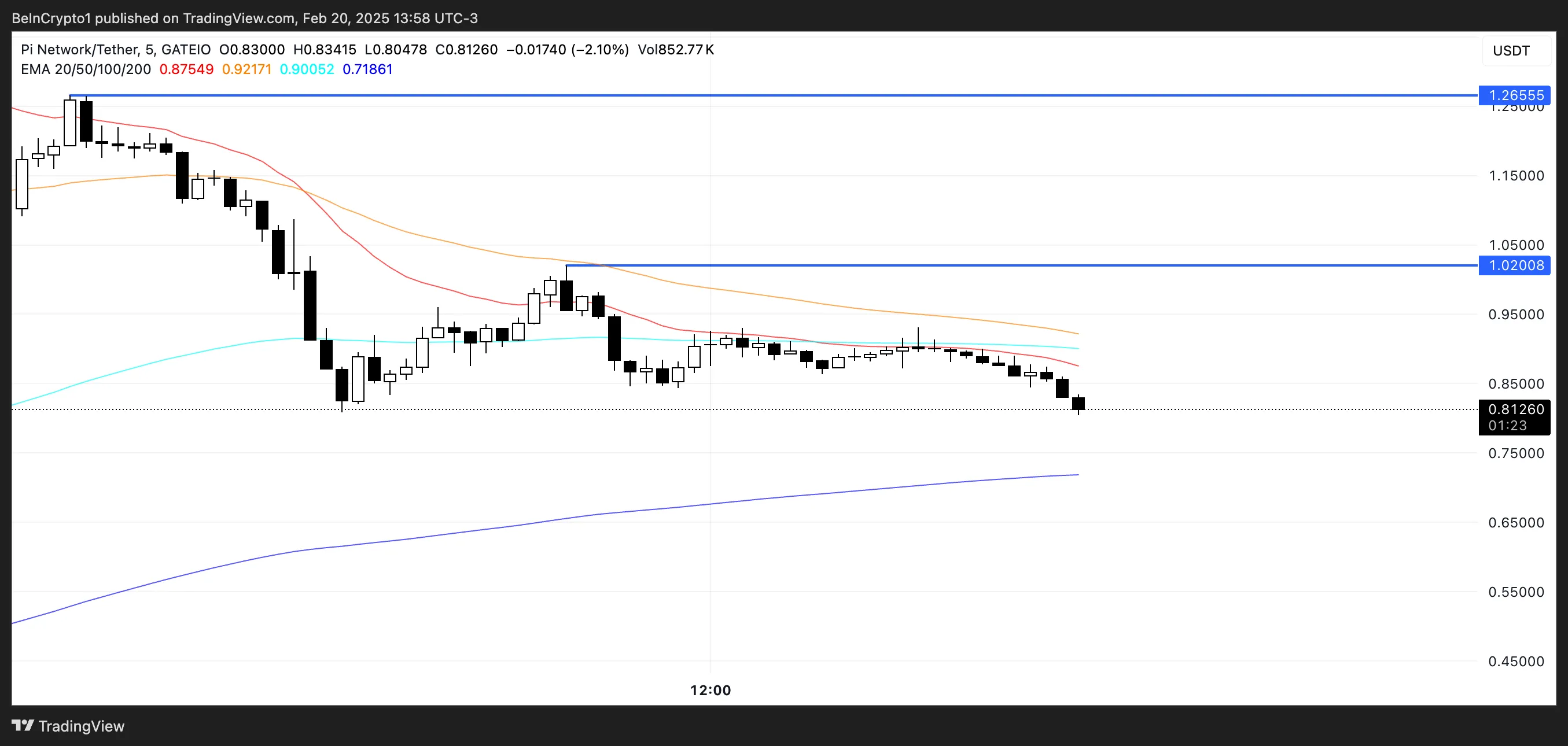 Si la presión de venta continúa, Pi podría probar el soporte alrededor de 0,71 dólares, donde se posiciona su línea EMA más larga. Esta es una zona crítica para mantener el rango de precio actual. Si se pierde este soporte, la tendencia bajista podría acelerarse. Podría llevar a más caídas y un impulso descendente continuo. Por otro lado, si la tendencia se revierte y Pi gana impulso alcista, podría probar la resistencia en 1,02 dólares.