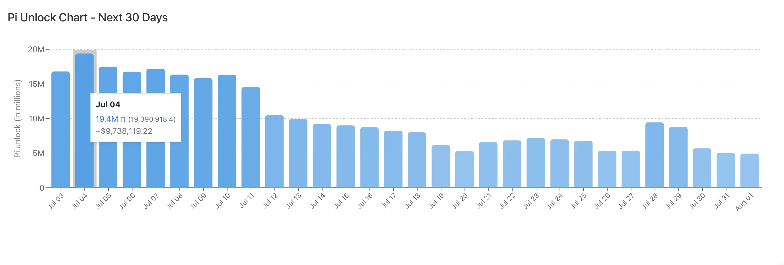 SponsoredNotablemente, 19,4 millones de tokens, el mayor desbloqueo en un solo día en este período, están programados para ser liberados mañana, 4 de julio. Esta afluencia podría aumentar la presión de venta, potencialmente revirtiendo las ganancias recientes.