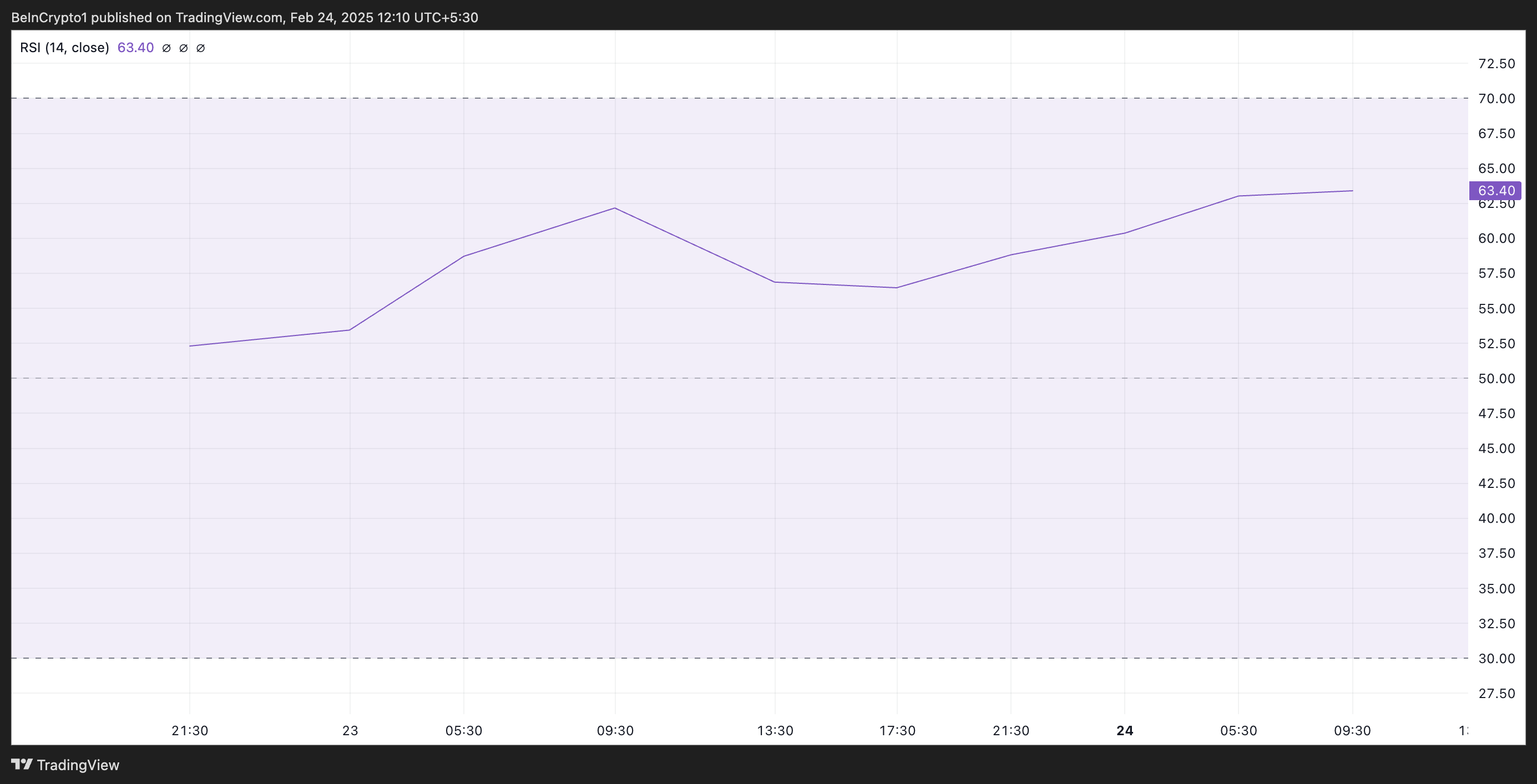 La alta demanda de PI se refleja en su creciente Índice de Fuerza Relativa (RSI). Al momento de escribir esto, este indicador clave de momentum, evaluado en un gráfico de cuatro horas, está en una tendencia ascendente en 63.40.
