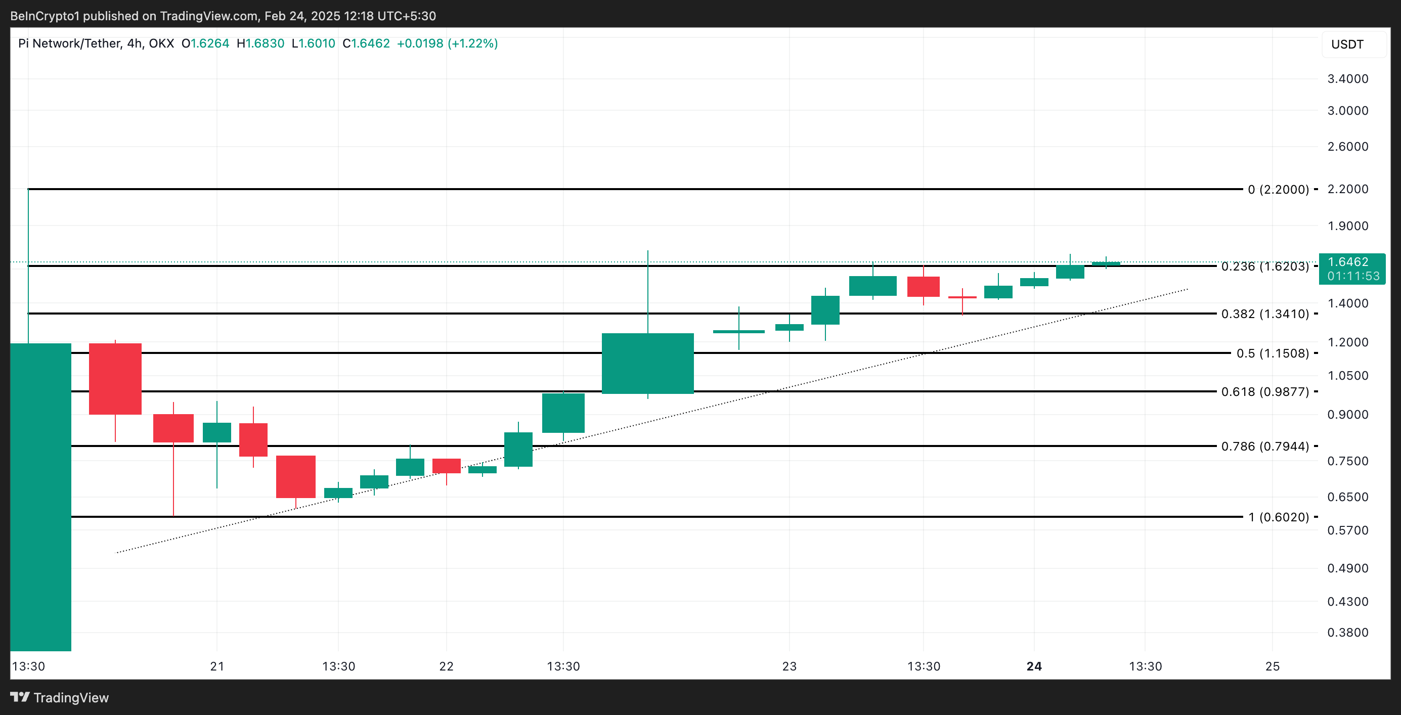 Actualmente, PI se negocia a 1.64 dólares, registrando un aumento del 173% desde su mínimo post-lanzamiento. Este rally de tres dígitos ha sido impulsado por el resurgimiento de la demanda de la altcoin en los últimos días.