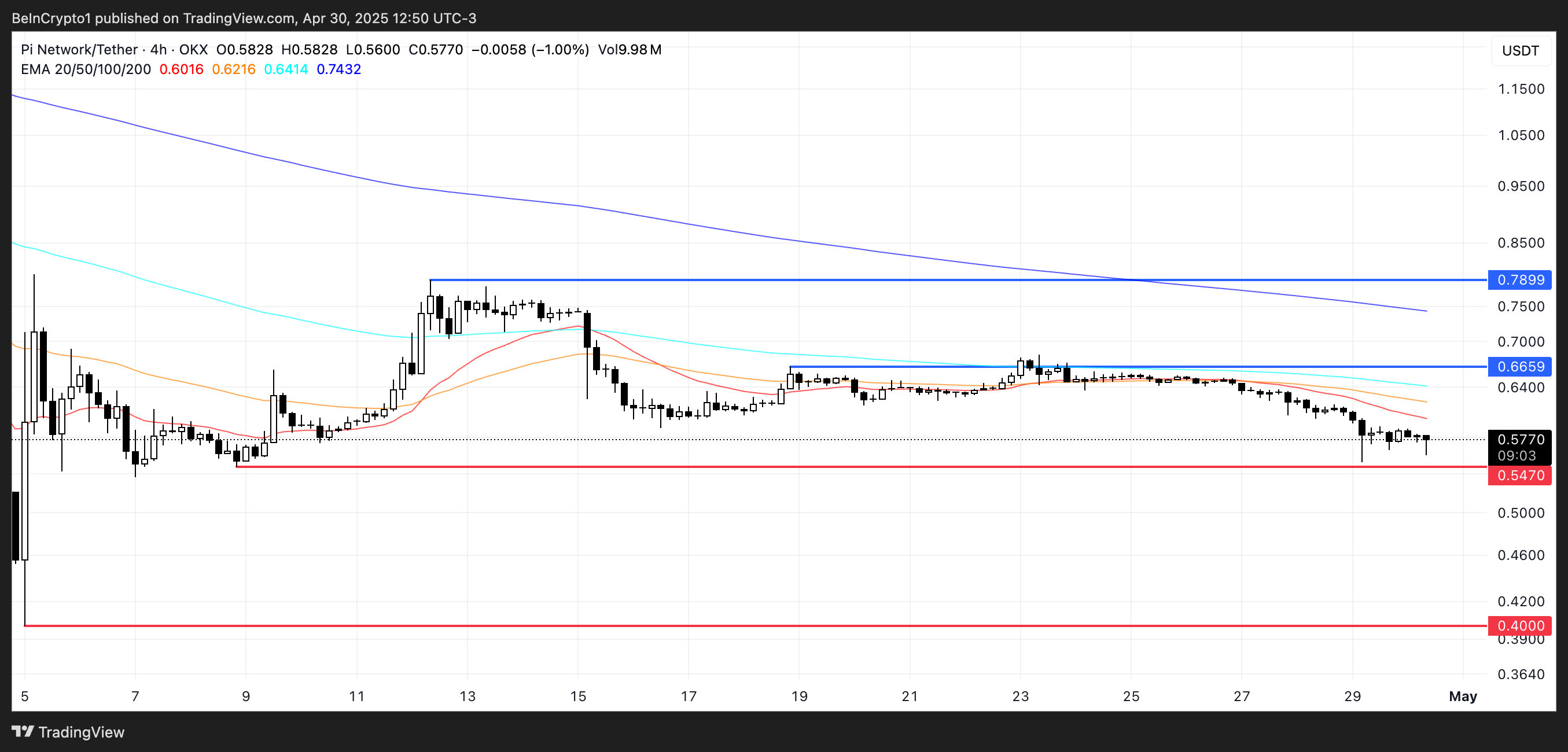 Pi Network enfrenta prueba clave de soporte mientras la estructura de EMA sigue siendo bajista