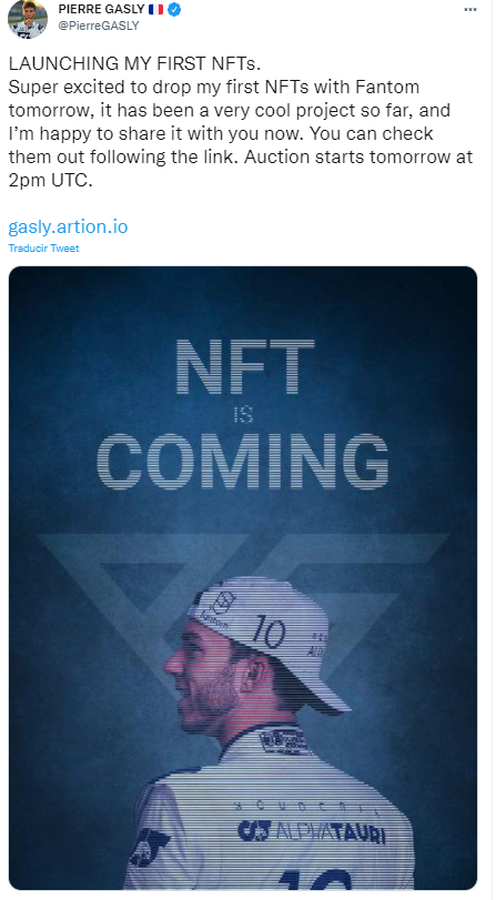El anuncio fue oficializado a través de la cuenta de Twitter del piloto francés, donde menciona que, a partir del día 20 de octubre se podrá acceder a su colección de NFT.