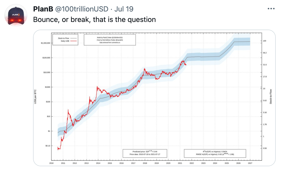 Marc Friedrich preguntó a PlanB si llegó a dudar de su modelo tras el tuit el 19 de julio de este año, en el que algunos entendieron que el creador del modelo de stock-to-flow podría estar dudando de su efectividad. Sin embargo, “nunca dude sobre este modelo” aunque recalcó que este modelo no representa tampoco una garantía pero sí confía que BTC alcance los 100.000 dólares antes del final del 2021.