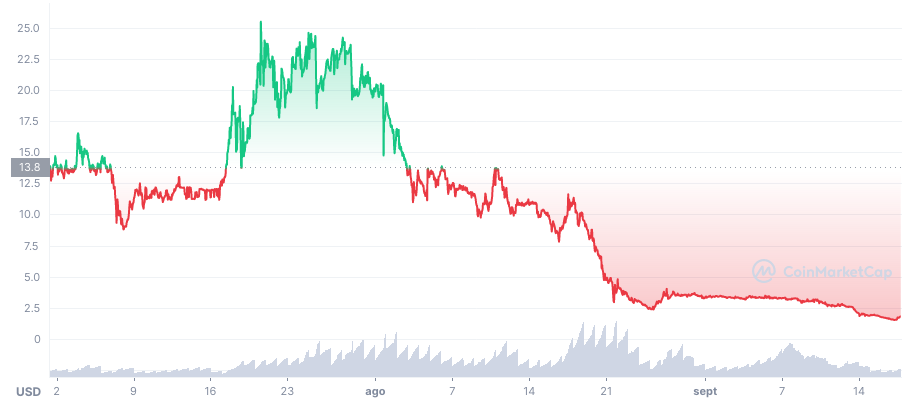 Al momento de escribir el artículo, $PVU cotiza en 1.80 dólares, continuando la caída vertiginosa registrada desde el pasado mes de agosto, según los datos de CoinMarketCap.