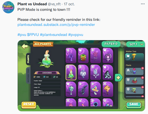 El anuncio de Plant vs Undead fue realizado a través de la cuenta de Twitter del popular videojuego basado en la modalidad Play to Earn: