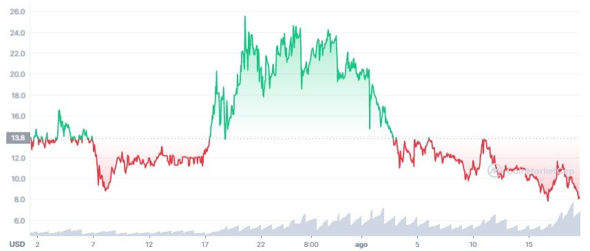 El pasado viernes 17 de septiembre $PVU registró un mínimo histórico en 7.44 dólares y desde entonces ha iniciado un leve movimiento al alza.