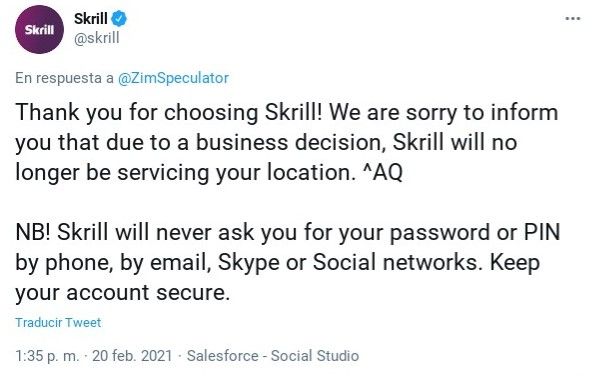 Por otro lado, en medio del revuelo que se vio en las redes sociales, también se pudo constatar que usuarios de Zimbabue recibieron el mismo correo que los usuarios venezolanos y viéndose igualmente limitados a usar sus cuentas, tanto de Neteller como de Skrill, hasta el 20 de abril.