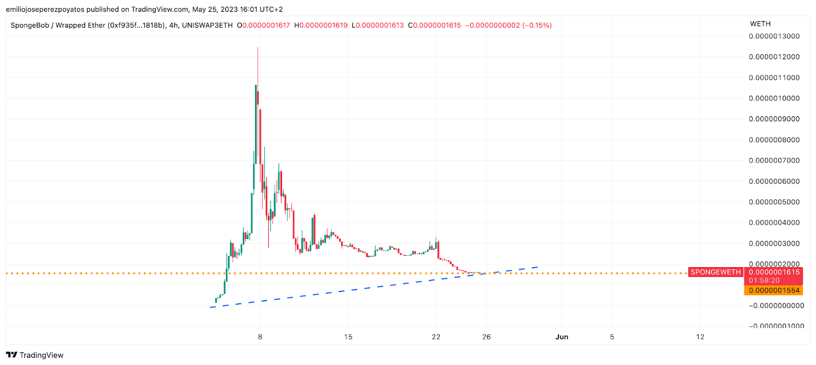 Una de las premisas con las que trabajan los analistas es, obviamente, el track-record que presenta la criptomoneda. El punto de partida de SPONGE lo situamos a partir de su listado en el DEX Uniswap, si bien como veremos más adelante el token está disponible para intercambio en otras plataformas, inclusive CEX.