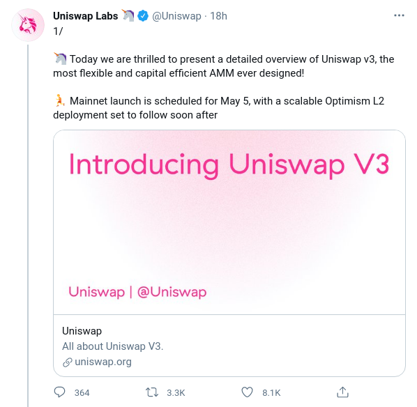 Por fin ha llegado el tan esperado anuncio oficial sobre el lanzamiento de la versión 3 de Uniswap. Sin embargo, hizo añicos las esperanzas de grandes mejoras en los costes y velocidades de las transacciones.