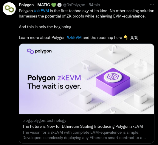 En un desarrollo constante hacia la escalabilidad, Polygon ha anunciado zkEVM, una nueva tecnología con equivalencia completa de Ethereum Virtual Machine (EVM). De esta forma los usuarios verán una reducción drástica de los costos y una velocidad mejorada.
