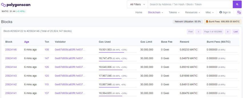 Por su parte, Polyscan mostró que la cadena había comenzado a crear bloques nuevamente y, desde que se aplicó la corrección, los bloques están comenzando a ponerse al día.