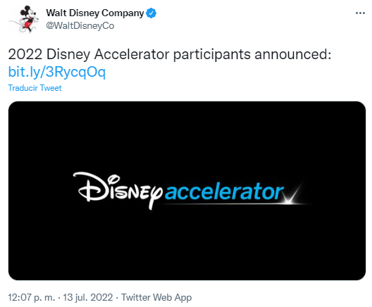 De acuerdo al comunicado oficial publicado el miércoles 13 de julio por The Walt Disney Company, el conglomerado de entretenimiento seleccionó seis empresas que se unirán al Disney Accelerator 2022, programa diseñado para acelerar el crecimiento de empresas innovadoras de todo el mundo.