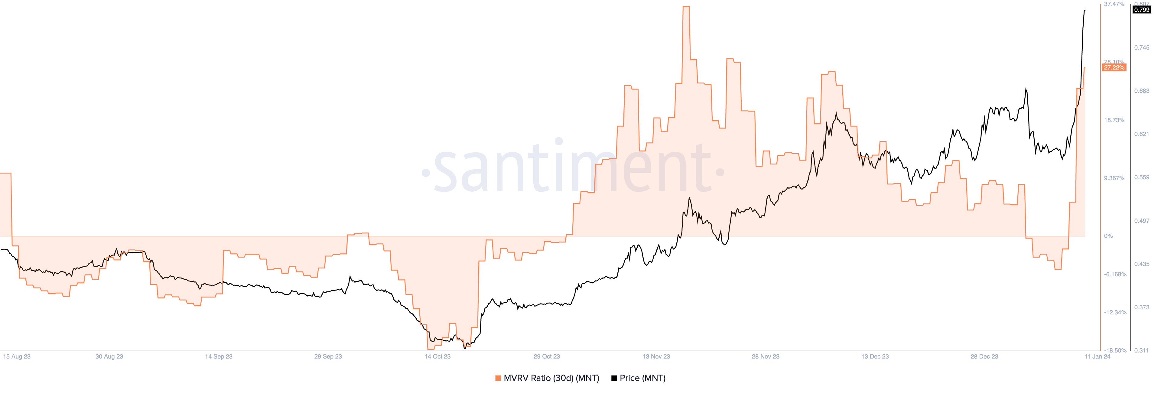 Sponsored Sponsored3- Mantle (MNT): tiene un MVRV a 30 días del 27.22%.