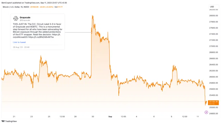 Profundizando en las complejidades de la situación, el triunfante enfrentamiento legal de Grayscale contra la Comisión de Bolsa y Valores de Estados Unidos (SEC) vio un fallo judicial que criticó el razonamiento del regulador para rechazar las solicitudes de ETF Spot Bitcoin como “arbitrarias y caprichosas”.