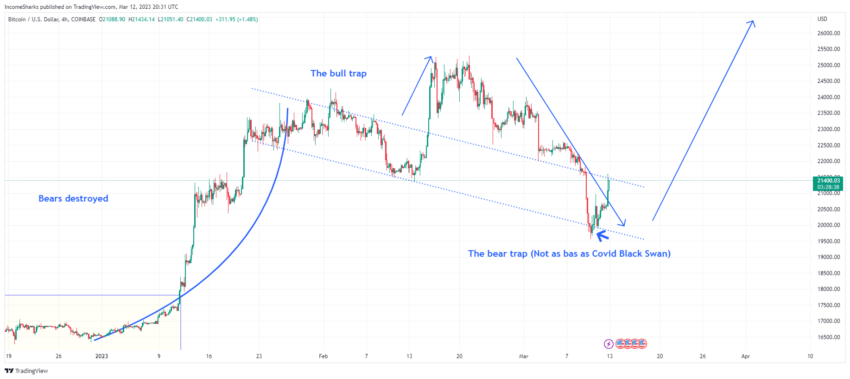 El analista IncomeSharks también dio un pronóstico positivo de Bitcoin. Según sus observaciones, la criptomoneda ha salido de la “trampa del oso”, una figura de análisis técnico que puede crear una falsa impresión del deseo del instrumento de seguir cayendo.