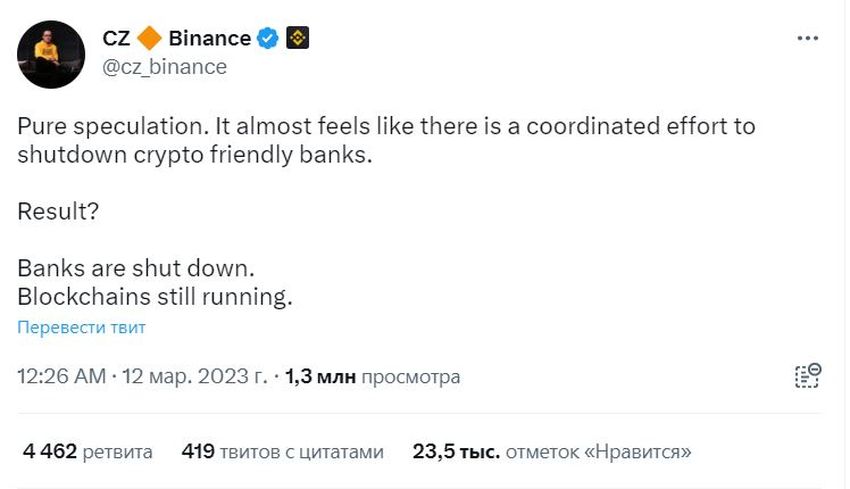 “Pura especulación. Da la sensación de que todo esto es una campaña coordinada para cerrar los bancos favorables a las criptomonedas. ¿Cuál es el resultado? Los bancos cierran y las blockchains siguen funcionando”.