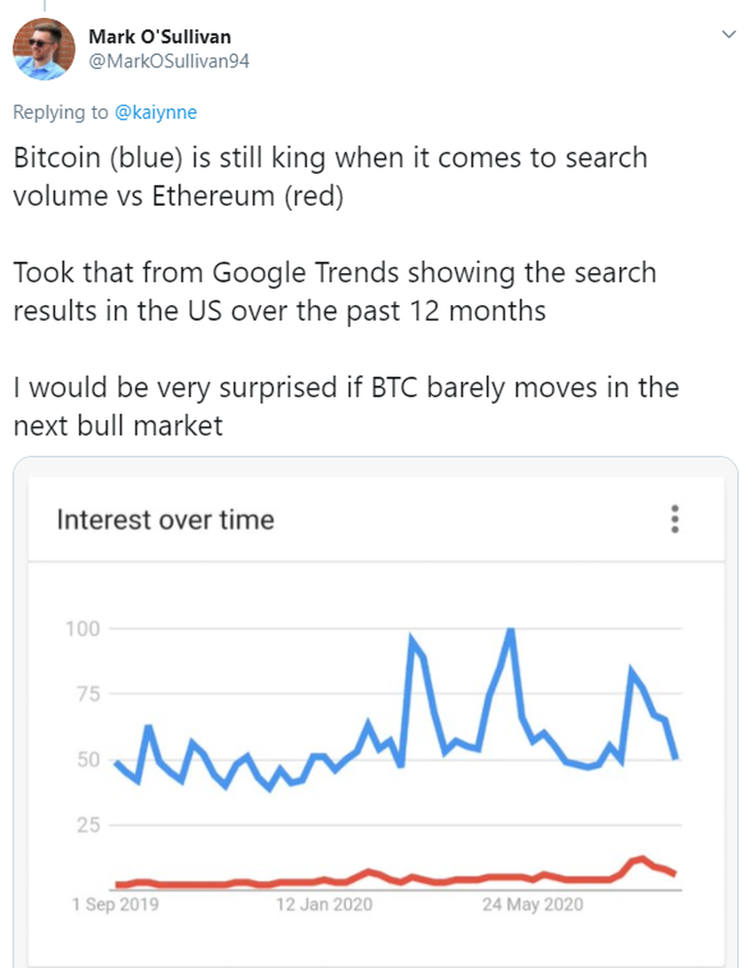 Otro usuario de Twitter, @ MarkOSullivan94, señala que cuando se trata de tendencias de Google, Bitcoin sigue siendo el rey.