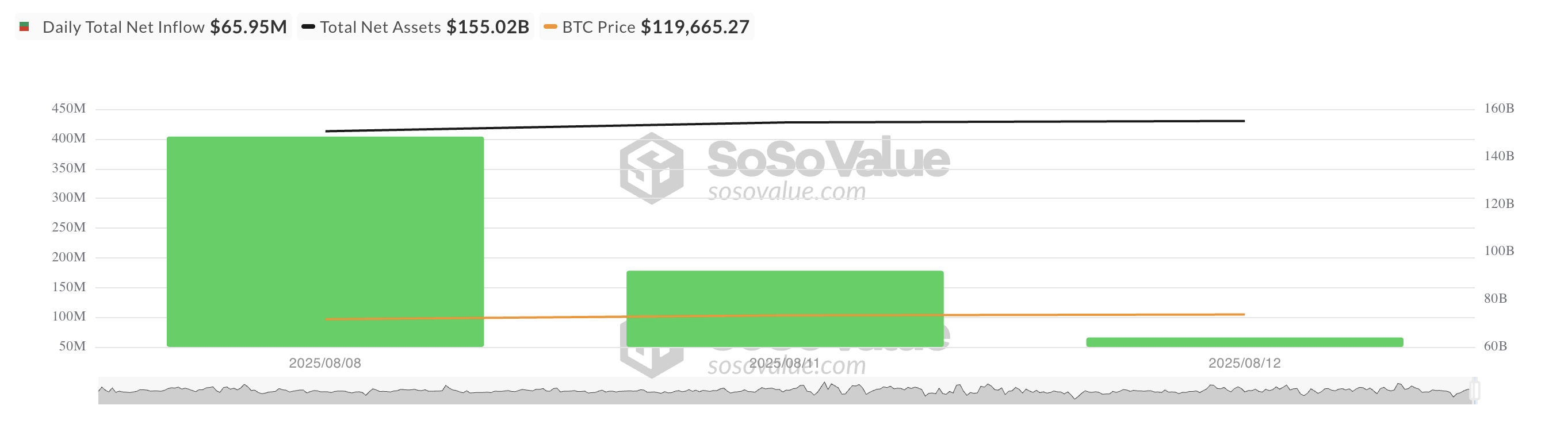 Según datos de SosoValue, aunque los fondos respaldados por BTC han mantenido entradas netas positivas desde el lunes, el volumen de estas entradas ha estado disminuyendo constantemente. Esto apunta a un retroceso modesto, pero notable, en la participación institucional.