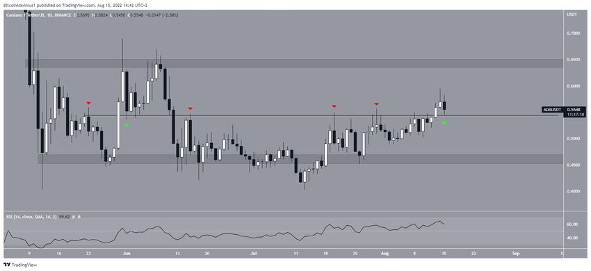 Cardano (ADA) ha creado un mínimo más alto y está en proceso de moverse hacia la línea de resistencia de su rango horizontal.