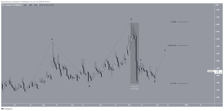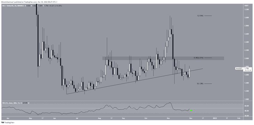 El gráfico de dos horas a corto plazo respalda la continuación del movimiento alcista hacia al menos 2 dólares. El precio INJ rompió una línea de resistencia descendente el 30 de noviembre y ahora está en proceso de validarlo como soporte.
