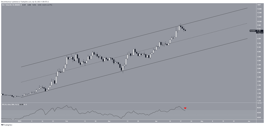 El análisis técnico del marco de tiempo diario muestra que el precio del token INJ se ha negociado dentro de un canal paralelo ascendente desde principios de año. En tales estructuras, las líneas de soporte y resistencia del patrón a menudo se validan varias veces.