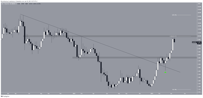 El precio de Injective (INJ) ha estado en alza desde principios de marzo y casi ha alcanzado un área de resistencia crucial en 10.40 dólares.