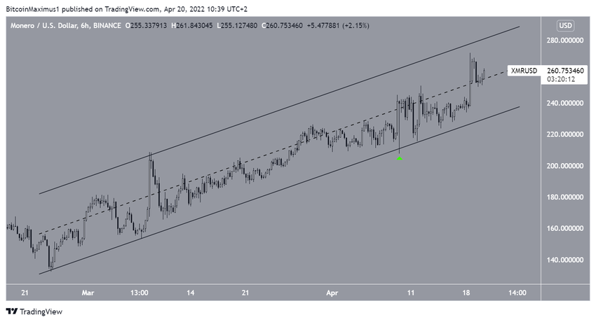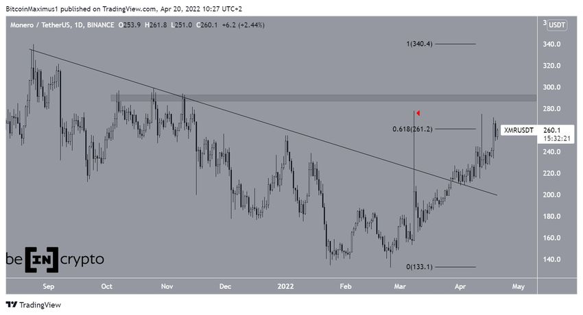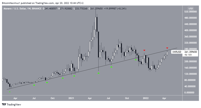 Hasta ahora, XMR alcanzó un máximo de 272 dólares el 12 de abril, descontando la mecha superior larga (icono rojo) del 8 de marzo.