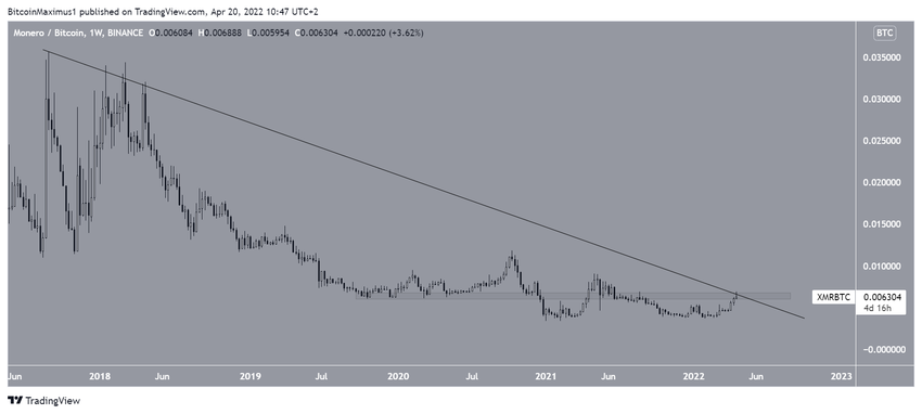 El precio de Monero (XMR) ha superado un nivel de resistencia diagonal, pero aún tiene que recuperar una importante resistencia a largo plazo.