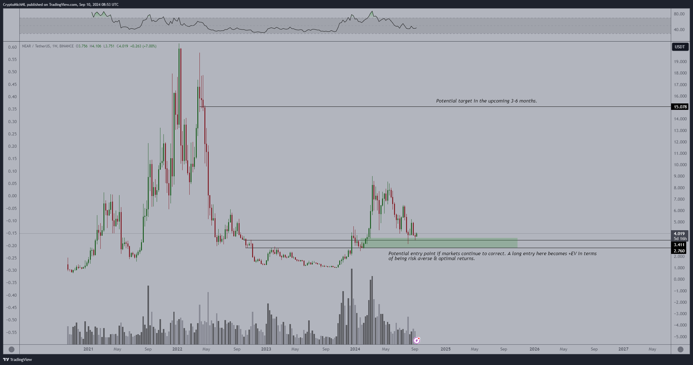 “Los mercados se están preparando para una reversión. NEAR ha vuelto a probar un área crucial para obtener soporte y parece probable que se mantenga desde aquí. Mientras se mantengan entre 2.75 y 3.40 dólares, supongo que veremos 15 dólares en los próximos tres a seis meses”, resaltó Michaël van de Poppe.