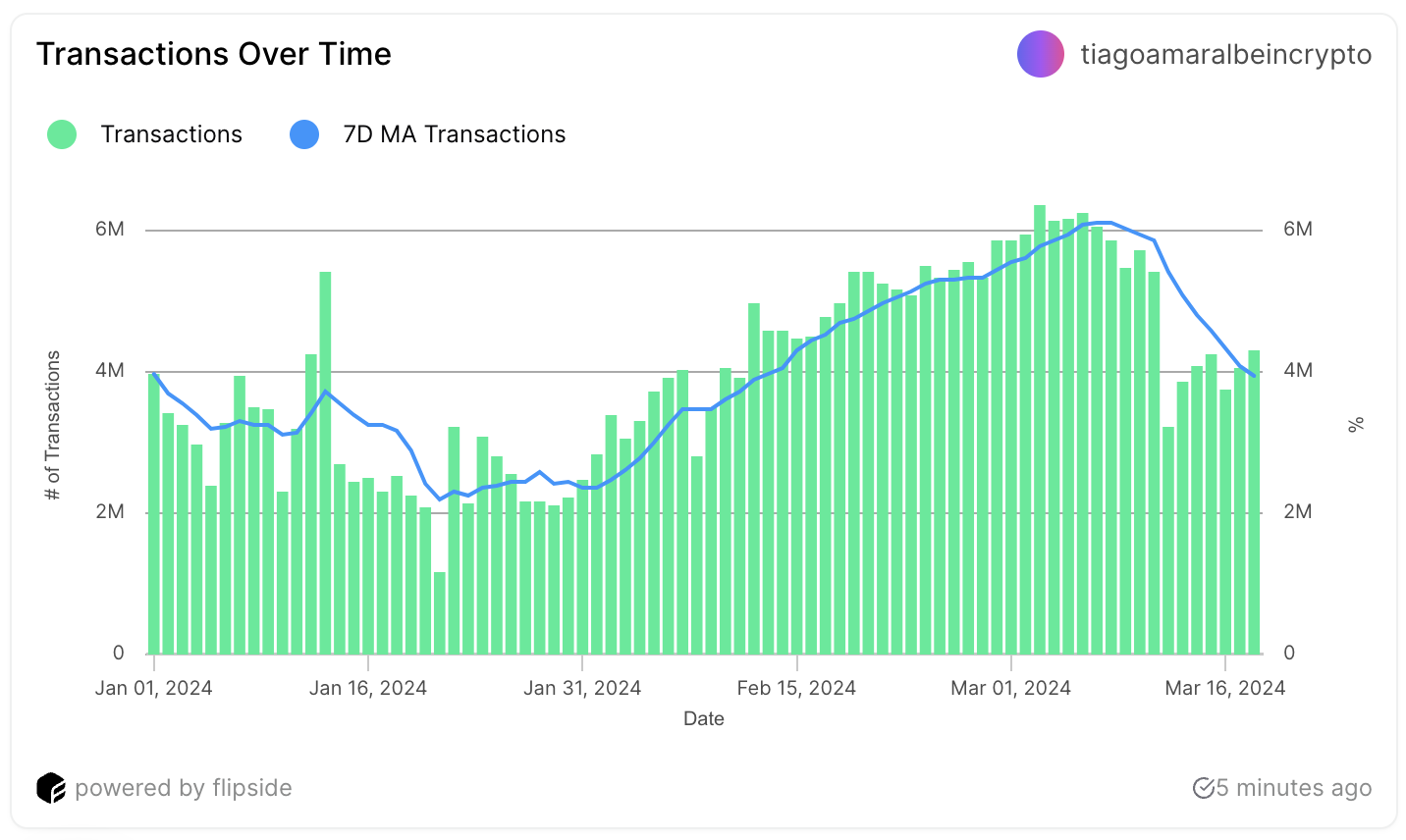Tras alcanzar un máximo de más de 6 millones de transacciones diarias el 3 de marzo, el número de transacciones comenzó a caer en las últimas dos semanas.