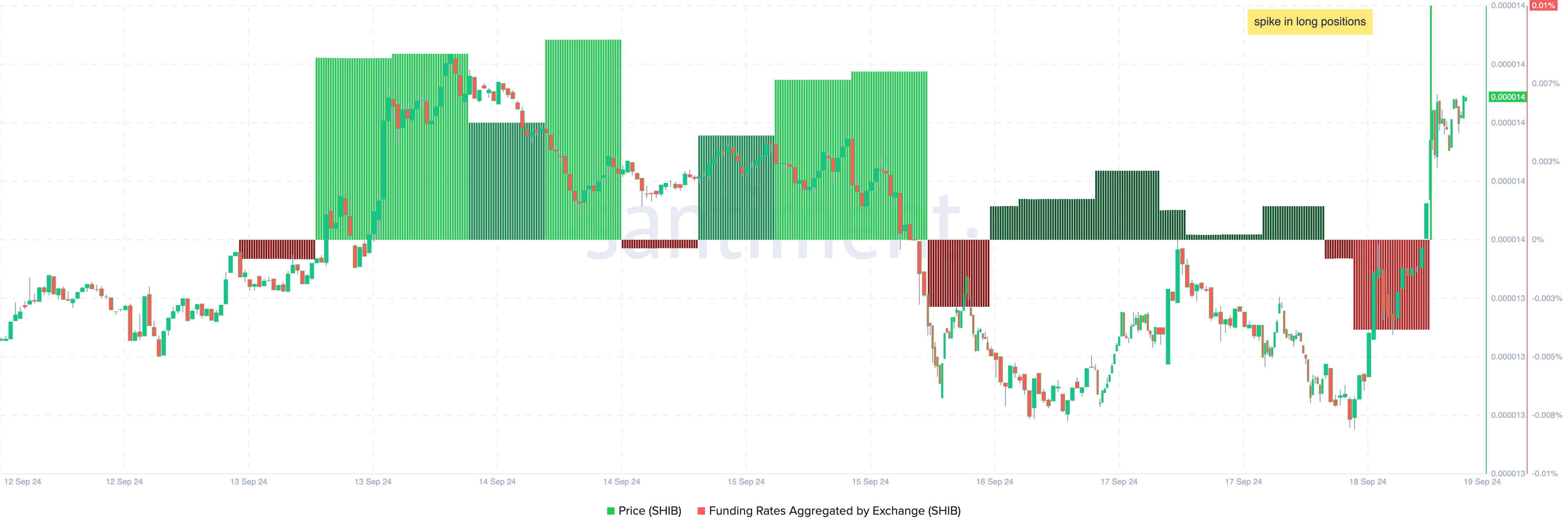 Hace dos semanas, SHIB se negociaba a 0.000012 dólares, en medio de preocupaciones sobre una posible capitulación. Sin embargo, el precio ha subido desde entonces a 0.000014 dólares, impulsado por la decisión del Comité Federal de Mercado Abierto (FOMC) de implementar un recorte de la tasa de interés de 50 puntos básicos.