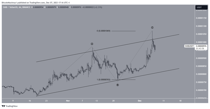 El recuento bajista sugiere que SHIB acaba de completar una estructura correctiva A-B-C. Esta posibilidad se ve respaldada por el hecho de que el precio se negocia dentro de un canal paralelo ascendente y las ondas A:C tienen una relación exactamente de 1:1.
