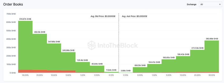 Curiosamente, la reciente actividad de trading en los exchanges muestra que los alcistas de Shiba Inu han seguido aumentando las órdenes de compra con la esperanza de una reversión alcista.