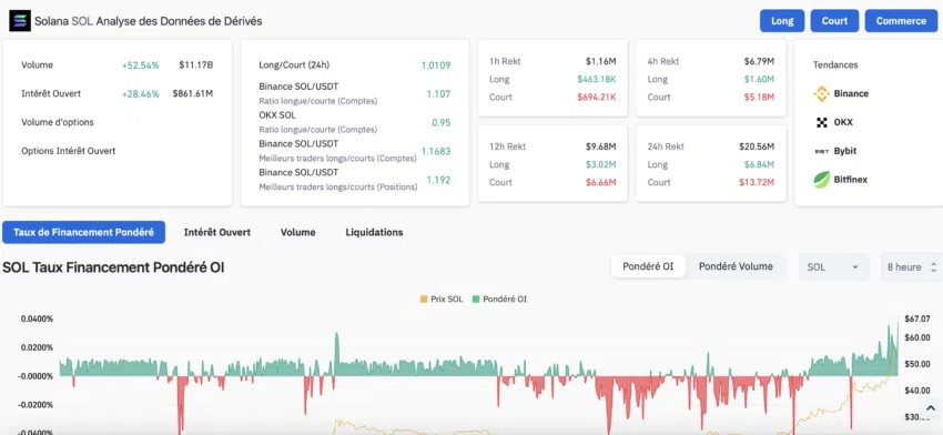 En cuanto al mercado de derivados, el interés abierto de SOL alcanzó los 861,61 millones de dólares el 11 de noviembre. La tasa de financiación de Solana volvió a territorio positivo durante el día, lo que refleja el sentimiento alcista de los inversores.