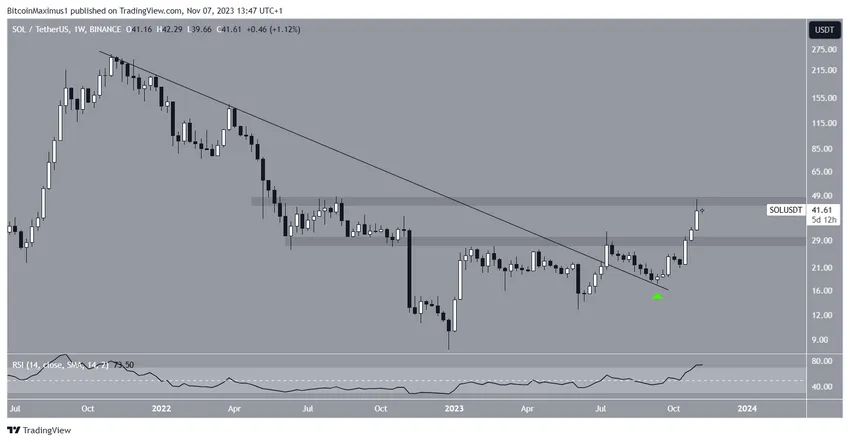 Tras un mes de octubre positivo, el precio de Solana (SOL) alcanzó un nuevo máximo anual de 46.90 dólares el 1 de noviembre.