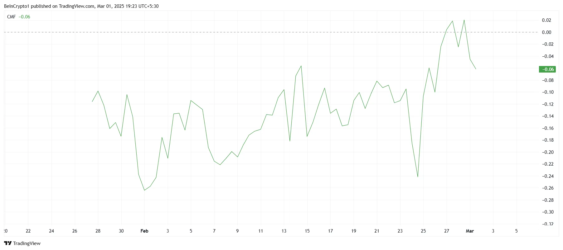 Este ambiente general sugiere que son posibles más caídas a menos que ocurran cambios significativos. Los indicadores técnicos para TRUMP reflejan el sentimiento negativo general del mercado. El indicador Chaikin Money Flow (CMF), que rastrea la acumulación y distribución de un activo, muestra una clara tendencia a la baja.