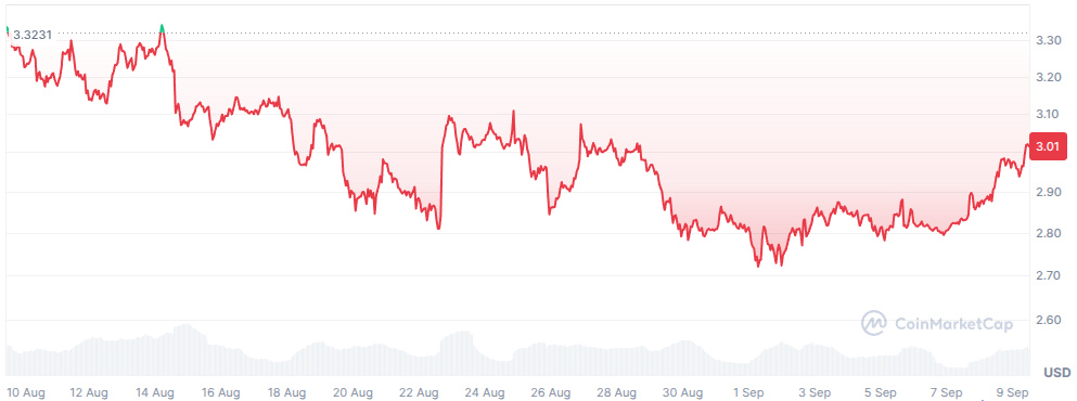 El analista Ali Martinez advierte: un nuevo fracaso podría devolver a XRP a los 2,70 dólares, un soporte crítico. Los indicadores técnicos tampoco son alentadores: el precio se mantiene por debajo de su media móvil de 50 días (3.07 dólares) y el RSI (43,67) confirma una tendencia bajista.