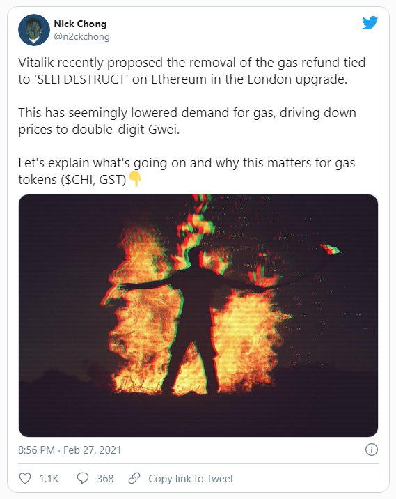 La obstrucción de la red de Ethereum sigue siendo una carga pesada para los desarrolladores y traders. Tras los problemas relacionados con el gas, el fundador Vitalik Buterin lanzó una nueva propuesta de mejora de ETH denominada EIP-3298 el 26 de febrero. Sugiere eliminar los reembolsos de gas para las funciones de “SSTORE” y “SELFDESTRUCT” en la actualización de Ethereum en Londres.