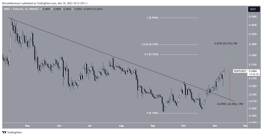 A pesar de esta predicción alcista del precio del RDNR, no mantener el aumento puede provocar una caída del 25% que validaría la línea de tendencia en 0.22 dólares.