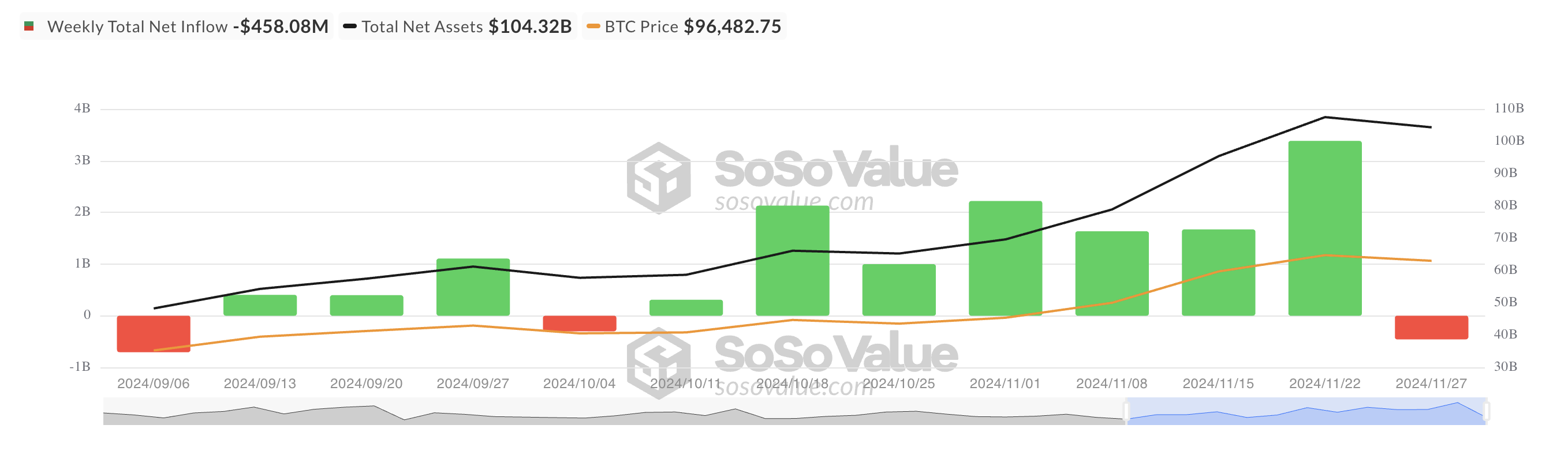 Curiosamente, los ETF de BTC han registrado salidas netas esta semana por primera vez en dos meses. Según SoSoValue, las salidas de estos fondos han totalizado 458 millones de dólares. Este descenso se produce tras una caída significativa en el precio de BTC, que lo vio negociarse tan bajo como 92,000 dólares a principios de esta semana.